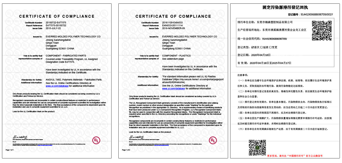 | 6 | PU發(fā)泡成型過(guò)程UL證書(shū) | E477575 |